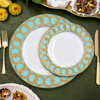 슈퍼 9 월 럭셔리 스타일 골드 장식 아름다운 패턴 디너 세트 두바이 웨딩 친환경 제품